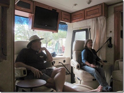 After lunch we went back to see John & Bridgett’s new motor home. and set a spell and visit. Of course Fred was just tickled to have visitors, and hopped from one to another to get constant attention.